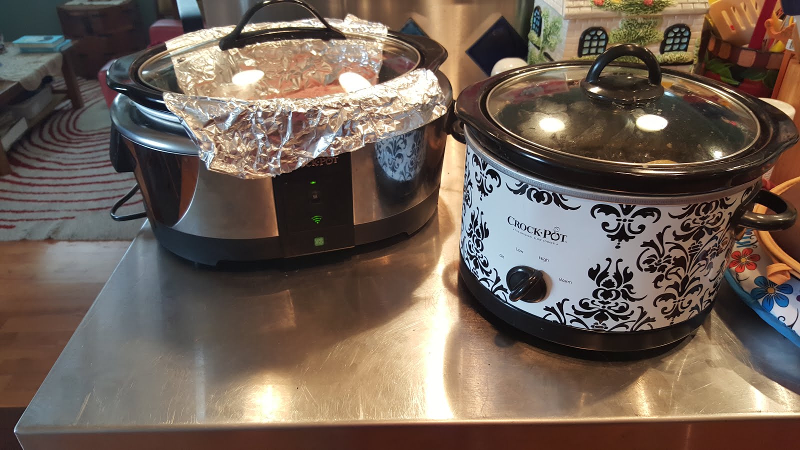 8. Place container in slow cooker, add water carefully up to ½” under the rim of bowl.